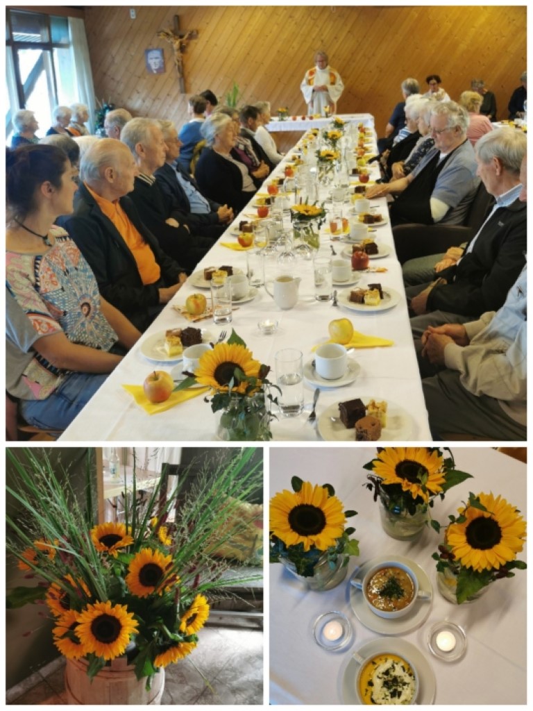 Zuerst feierten wir mit Pfarrer Friedl Kaufmann eine Heilige Messe, mit Worten und Gedanken des Dankes und der Fülle, was uns alles von der Schöpfung an Reichtum geschenkt wird. Auch dachten wir an alle Menschen, die zur Zeit schwere Zeit erleben müssen.