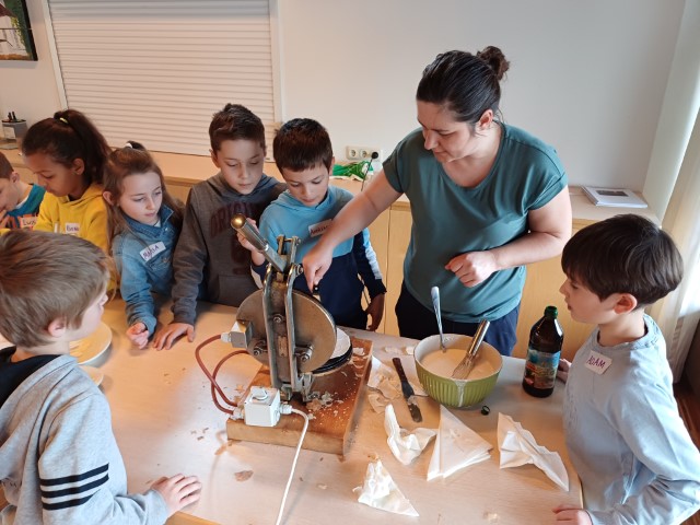 Als Höhepunkt des Nachmittags hatten wir das Privileg, gemeinsam mit den Kindern die Hostie für ihre Erstkommunionfeier selbst zu backen. Dies war nicht nur eine einmalige Erfahrung für die Kinder, sondern auch eine Gelegenheit, die tiefe Bedeutung der Erstkommunion auf lebendige und anschauliche Weise zu vermitteln.