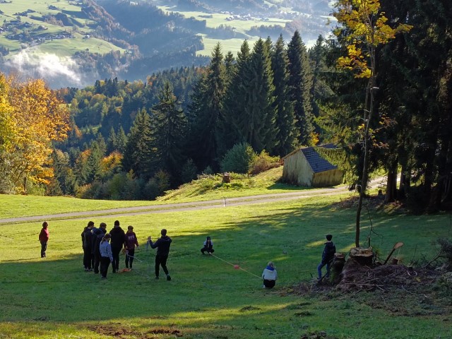 So sind wir im Oktober letzten Jahres auf eine Hütte gewandert. Dort haben wir uns besonders dem Kennenlernen und den beiden Säulen „die eigene Originalität entdecken“ und „Christsein in Gemeinschaft“ gewidmet. Wir sind am Freitagmittag zur Hütte gelaufen und am Samstagnachmittag wieder in Egg und Großdorf angekommen. Mit gemeinschaftlichen Spielen und Aufgaben sind wir uns gegenseitig auf die Spur gekommen. Auf der Hütte haben wir den Firmlingen das Sozialprojekt bzw. das Umweltprojekt ans Herz gelegt. Dies mussten sie selbständig in den Pfarren suchen, organisieren und durchführen. Das Ergebnis haben sie mit Foto und ein paar Sätzen in unserem Firmpadlet für uns alle veröffentlicht.