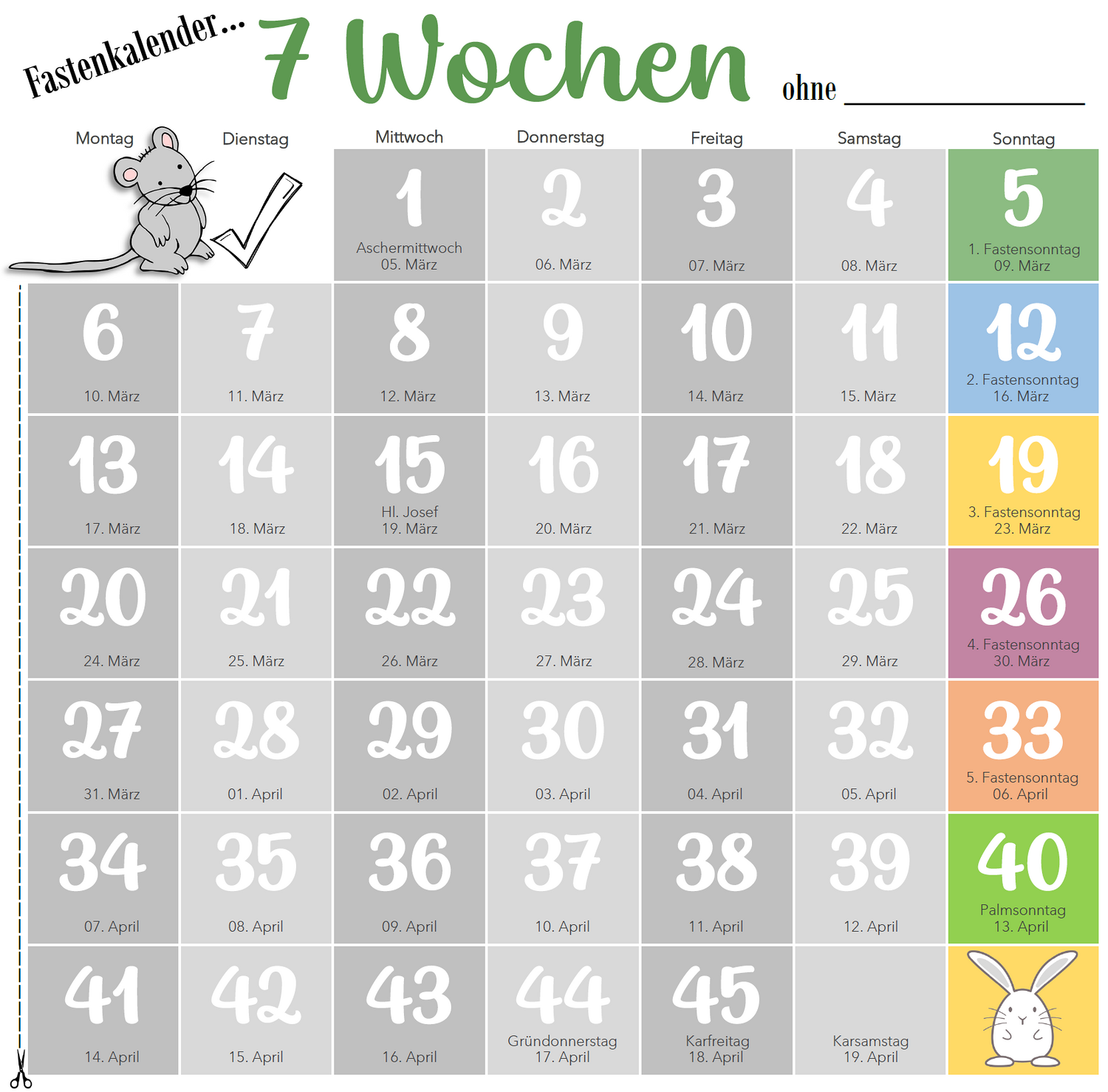 Drucke den Fastenkalender aus