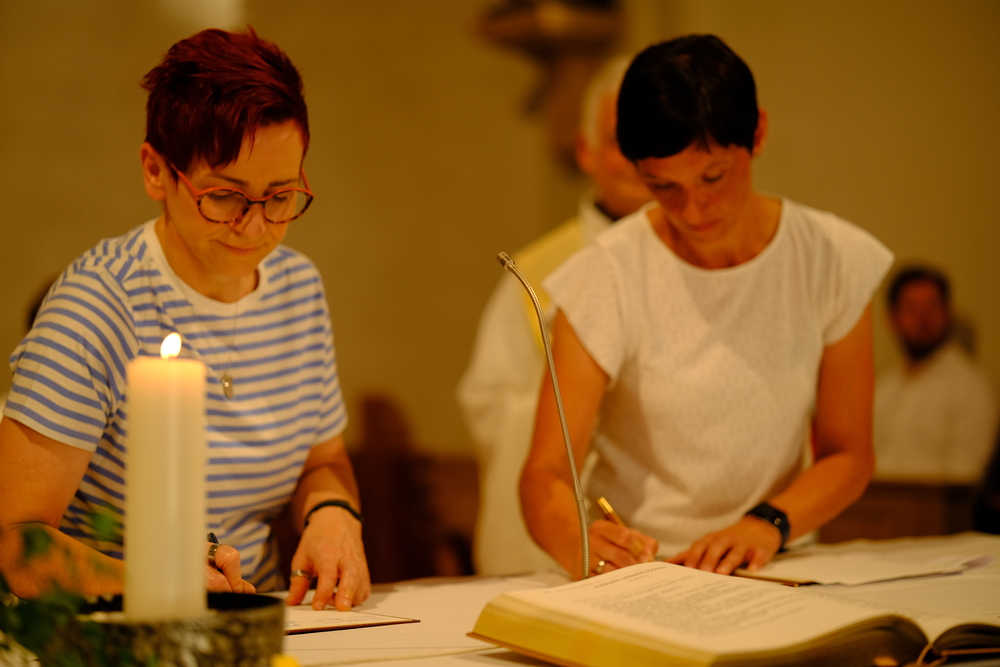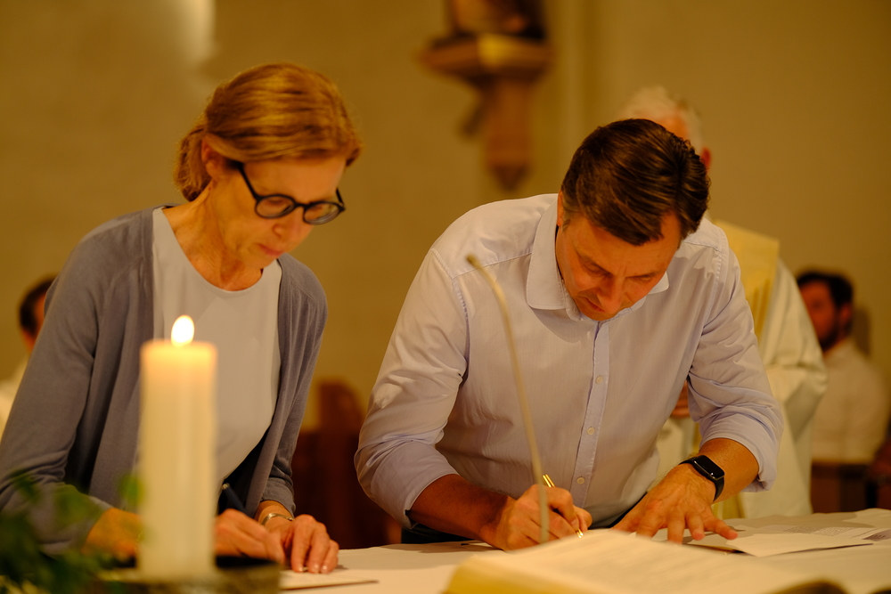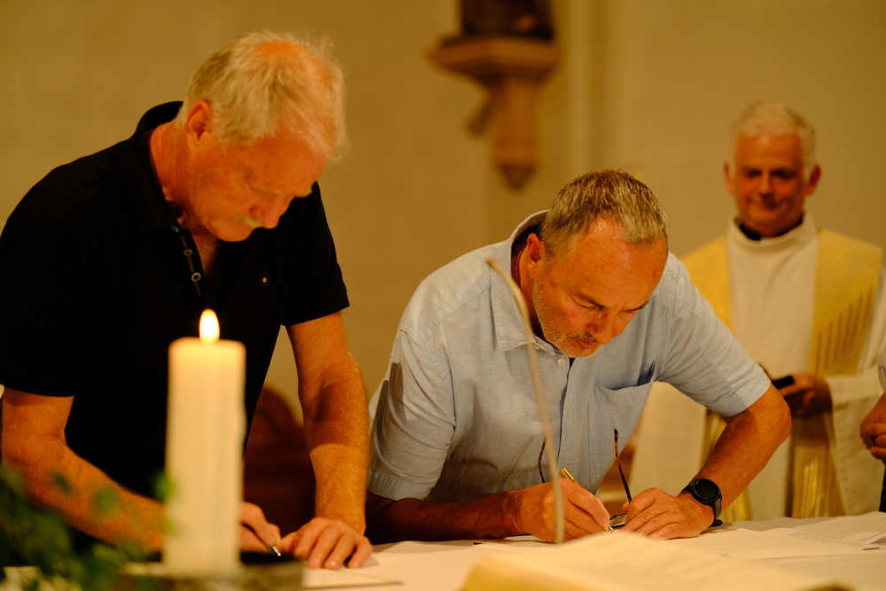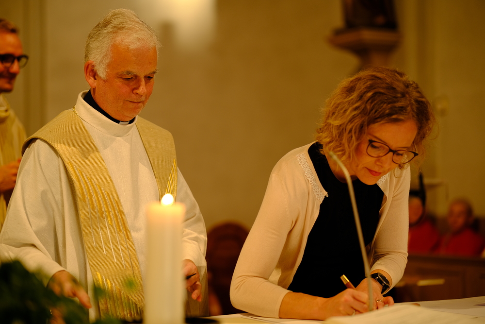 Die Vorsitzenden der pfarrlichen Gremien aus der Seelsorgeregion Vorderland bestätigten und bezeugten mit ihrer Unterschrift die Einsetzung des neuen Moderators. Nach dem Verlesen des diözesanen Dekrets und der offiziellen Übergabe an Mathias Bitsche wurde er feierlich in sein Amt eingeführt.