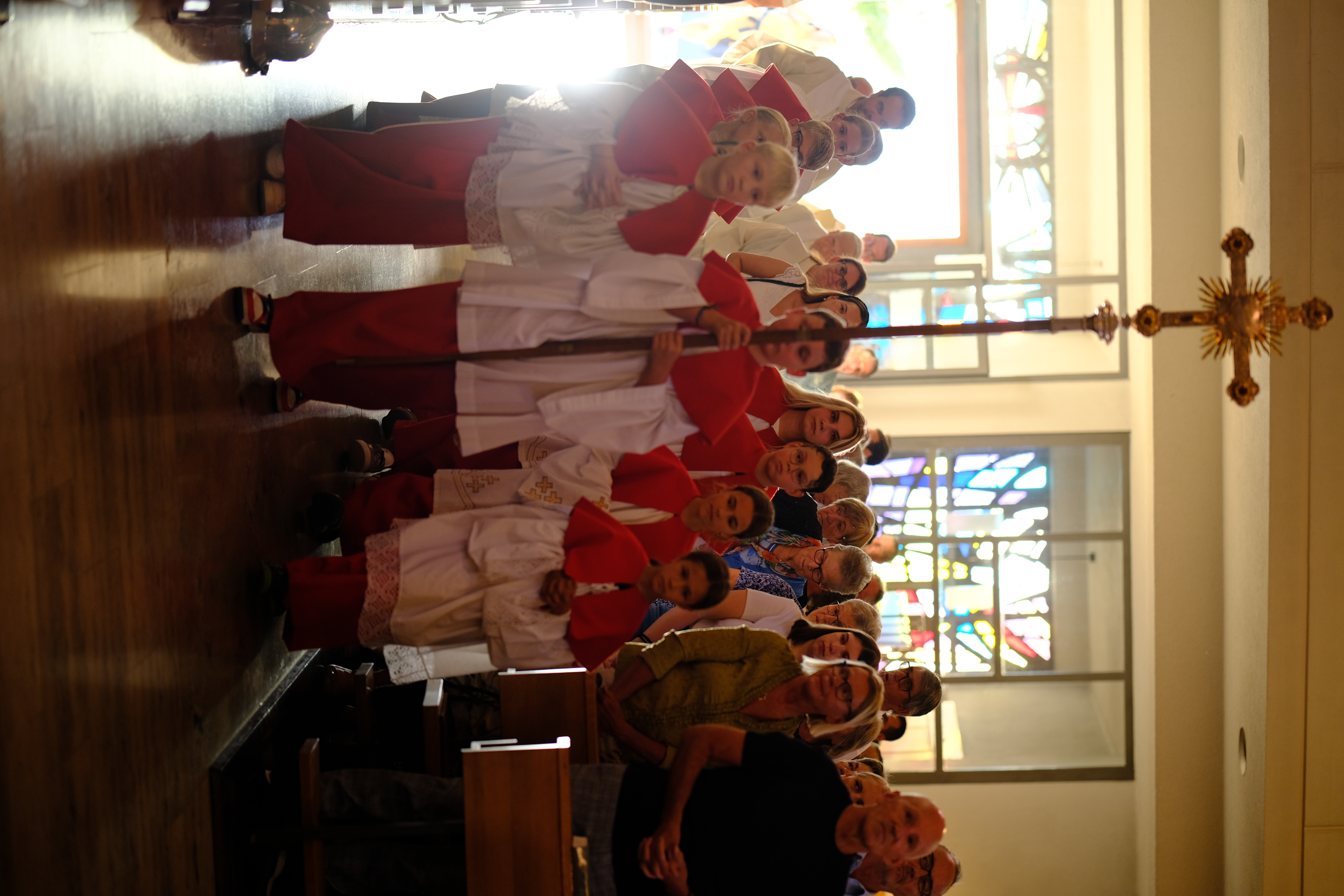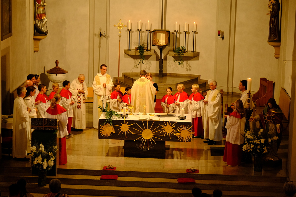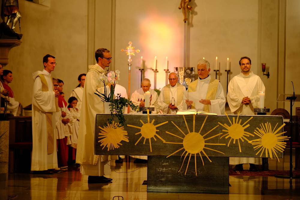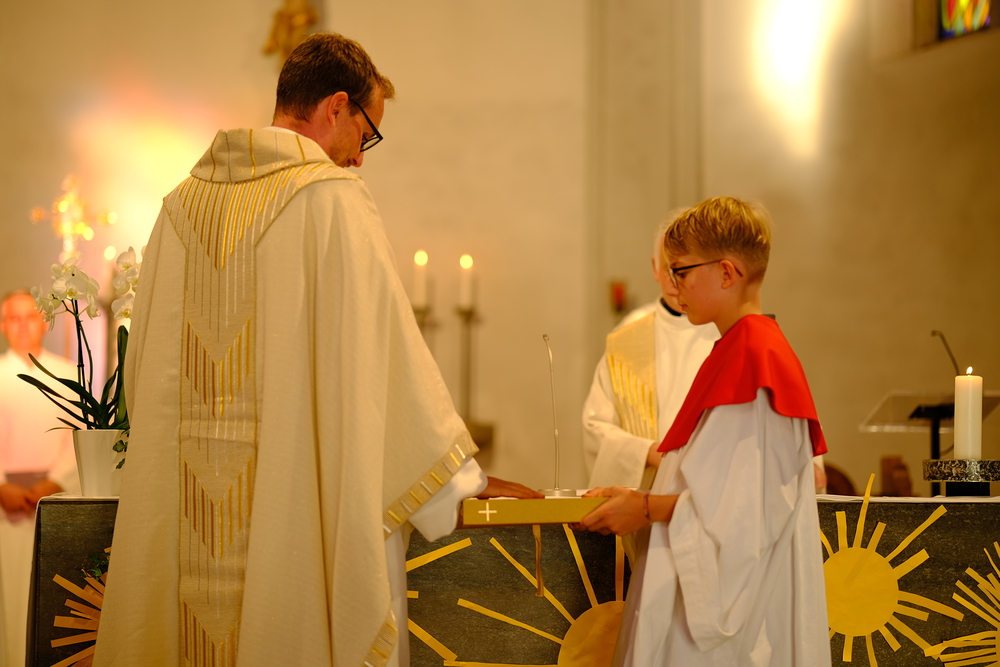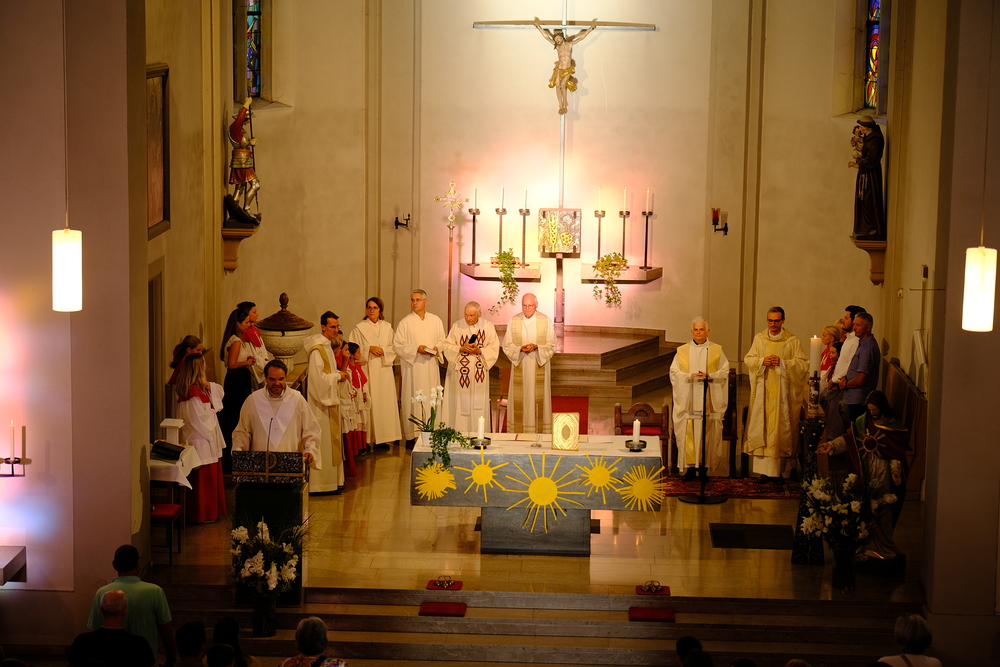 Zur Eröffnung der Feier zogen die Ministranten:innen, Priester und Gemeindeleiter:in in die Sulner Pfarrkirche ein, wo sich Menschen der ganzen Seelsorgeregion Vorderland zu diesem besonderen Anlass unter einem Dach versammelt haben.