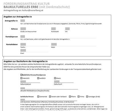 Vorlage Förderantrag Baukulturelles Erbe Land Vorarlberg Word