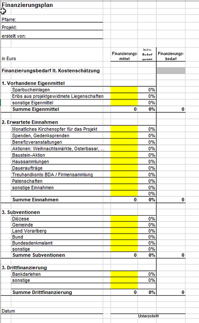 Vorlage Finanzierungsplan Excel