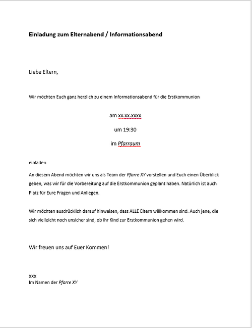 Einladung zum Elternabend, Ideen und Anregungen