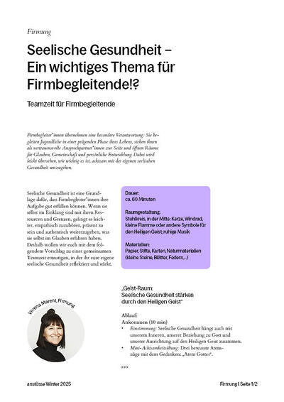 Firmbegleiter*innen übernehmen eine besondere Verantwortung: Sie begleiten Jugendliche in einer prägenden Phase ihres Lebens, stehen ihnen als vertrauensvolle Ansprechpartner*innen zur Seite und öffnen Räume für Glauben, Gemeinschaft und persönliche Entwicklung. Dabei wird leicht übersehen, wie wichtig es ist, achtsam mit der eigenen seelischen Gesundheit umzugehen.