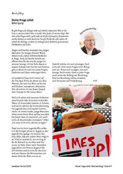 Es gibt Fragen, die drängen nicht auf schnelle Antworten. Was ist der Sinn in meinen Leben? Was ist Liebe? Wie finde ich meinen Weg? Wer sich solche Fragen stellt, sucht mehr als bloße Information. Beantwortet werden können sie nicht durch eine Google-Recherche oder indem ich schnell die KI frage, sondern sie verlangen Zeit, Zuhören, gemeinsames Nachdenken und Gebet.