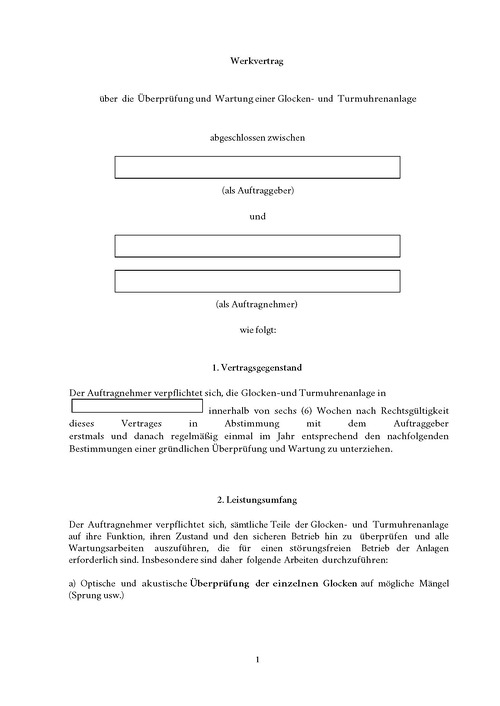 Mustervertrag Glocken und Turmuhren