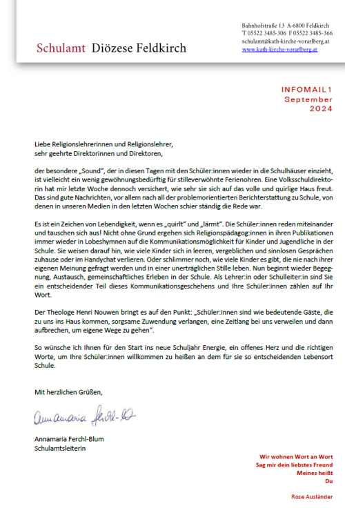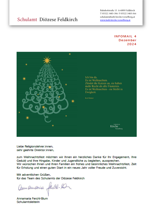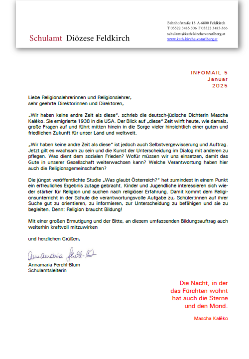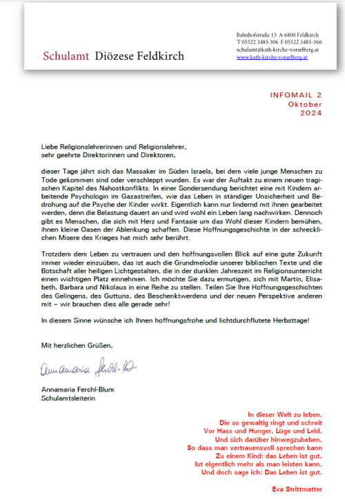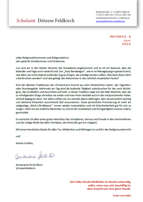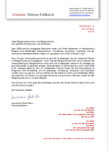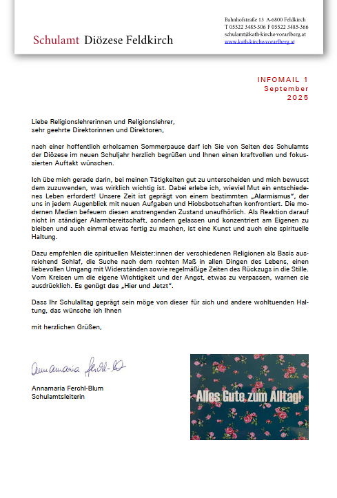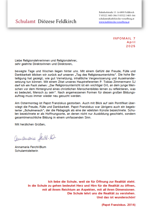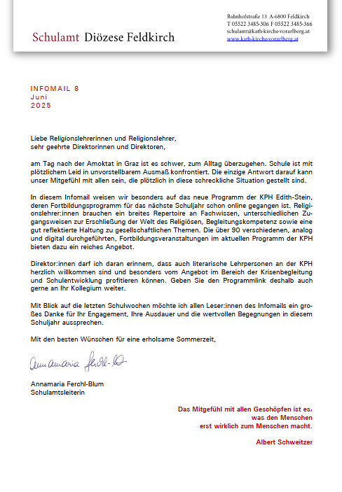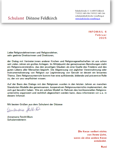 Infomail des Schulamts der Diözese Feldkirch.
